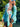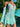 Iridescent aquas sequin on 4 way stretch mesh tinker style Disco Dress with grommet accents.
